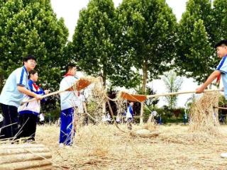 临沂第十七中学:传承农耕技艺 体验小麦脱粒